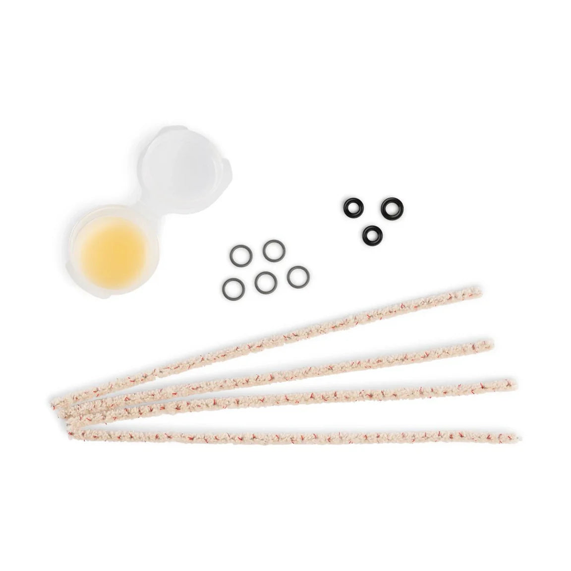 El DynaWax incluido en el kit funciona como lubricante para los o-rings, facilitando el armado del dispositivo, y también sirve como acondicionador para las piezas de madera. Además, el kit trae ambos tipos de o-rings para que puedas reemplazar los originales en caso de que se pierdan o se rompan.